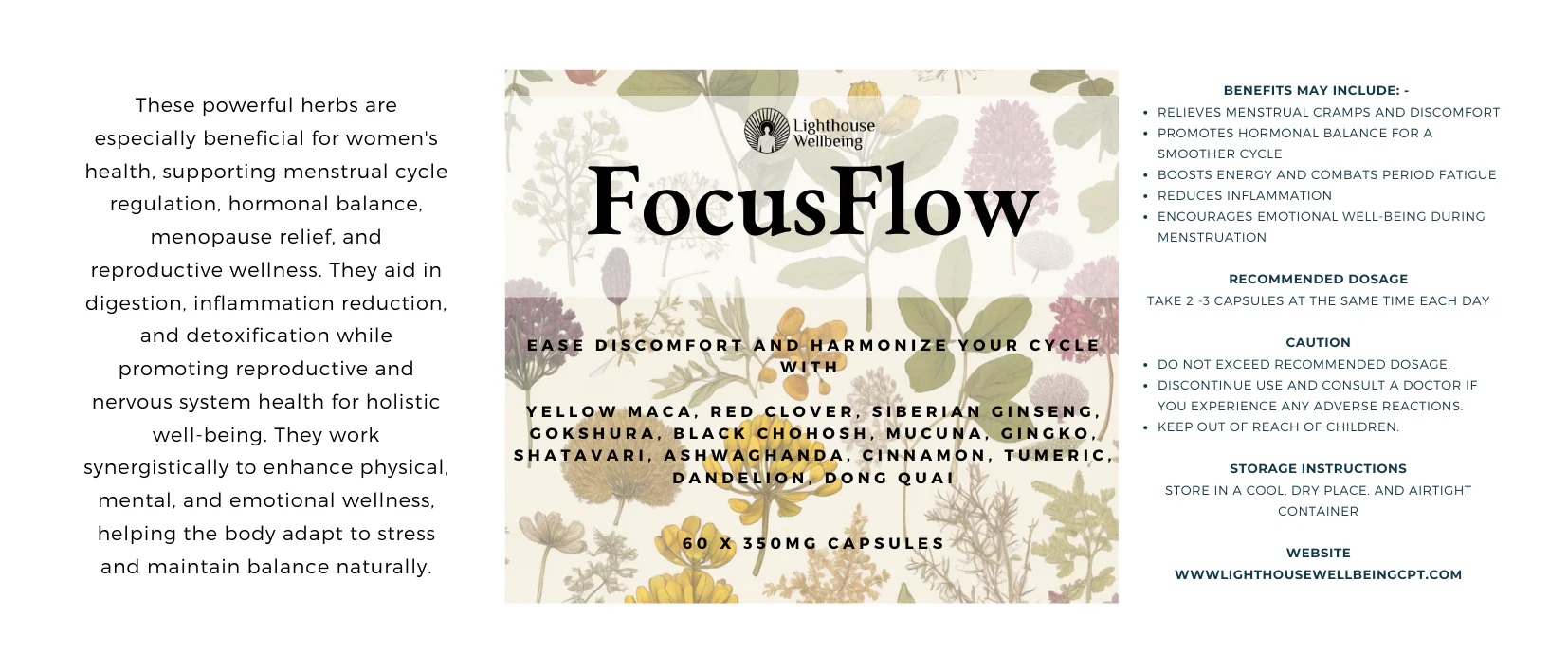 Whether you’re dealing with uncomfortable PMS symptoms, irregular cycles, or simply want to support your overall hormonal wellness, FocusFlow offers a gentle yet effective solution rooted in traditional herbal wisdom.