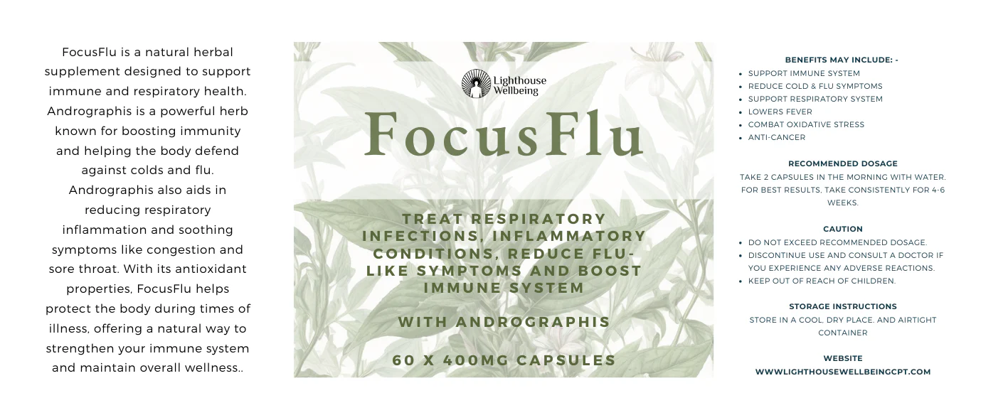 When cold and flu season strikes, your body needs more than basic support—it needs the proven power of Andrographis Paniculata. FocusFlu delivers this legendary herb in a premium 350mg formulation designed to boost your immune system, reduce symptoms, and get you back to feeling your best faster than ever.